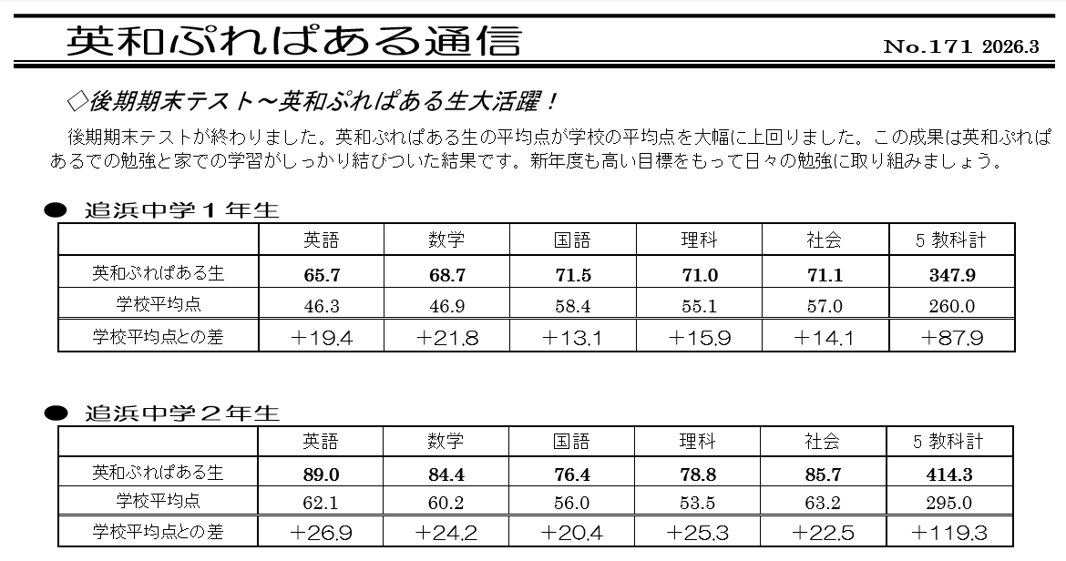 後期期末テストの結果